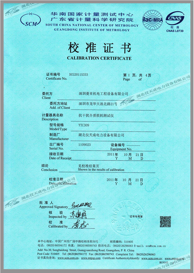 轉(zhuǎn)載:"YTC309抗干擾介損自動測試儀鑒定證書" 請注明來源于儀天成電力。 更多技術(shù)問題請致電儀天成電力客戶服務(wù):027-87876585,技術(shù)部專線:027-87876585,在線客服:719388481